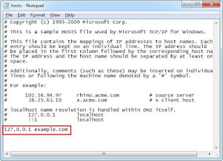 Bây giờ, thêm dòng sau vào file hosts: