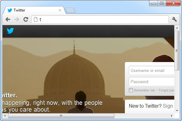 Bây giờ, chỉ cần nhập t vào thanh địa chỉ, trình duyệt sẽ truy cập đến twitter.com.