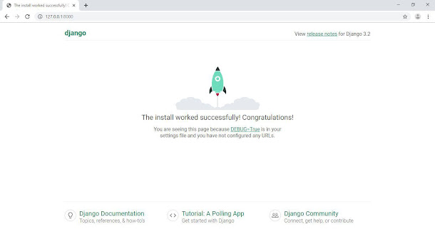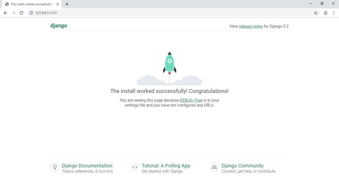 Ở thời điểm viết bài này, phiên bản Django là 3.2.7, do đó bạn nhìn thấy như hình trên.