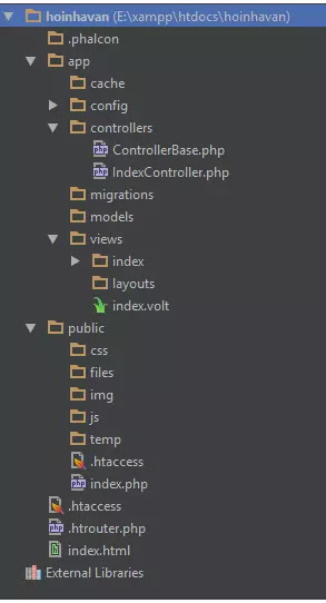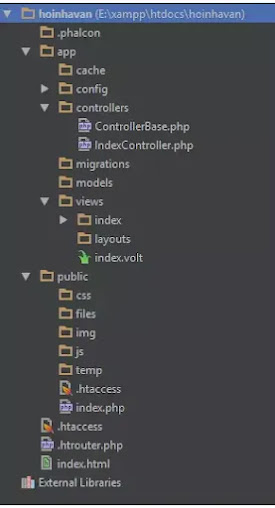 phalcon project project_name - Sau khi tạo xong thì cấu trúc thư mục sẽ hiển thị như sau: