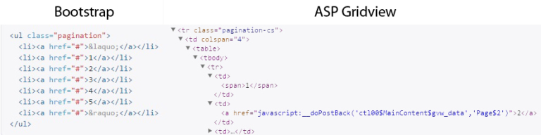 Có một vấn đề khi bạn muốn áp dụng thành phần này vào phân trang của ASP.NET Gridview bởi vì sự khác biệt về bố cục trong việc sử dụng Bootstrap và Gridview khi phân trang. Bạn có thể xem sự khác nhau trong hình dưới đây.