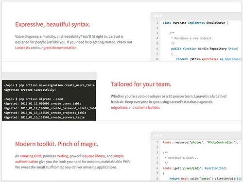 Mặc dù Laravel là một PHP framework tương đối mới (được phát hành năm 2011) nhưng theo các khảo sát trực tuyến gần đây do Sitepoint phát hành thì đây là một trong những framework được các nhà phát triển sử dụng nhiều nhất. Laravel có một hệ sinh thái rộng lớn với một nền tảng triển khai và lưu trữ tức thời. Trang web chính thức của Laravel cung cấp nhiều hướng dẫn dưới dạng video được gọi là Laracasts.